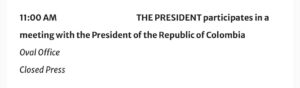 La reunión está programada en un formato relativamente breve y privado en el Despacho Oval, y tras su conclusión se espera que ambos gobiernos ofrezcan declaraciones públicas desde la Embajada de Colombia en Washington, donde se anunciarán posibles acuerdos o declaraciones conjuntas.