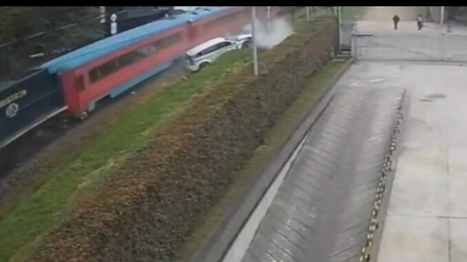 El sonido estridente de un frenazo y los gritos de alerta quebraron la rutina de los viajeros del Tren de la Sabana la tarde de este jueves. Eran cerca de las 4:00 p.m. cuando la locomotora, en su recorrido habitual hacia la capital, arrolló una camioneta blanca que habría ignorado la señal de pare en el cruce férreo ubicado en el sector del Restaurante El Pórtico, en Chía, al norte de Bogotá.