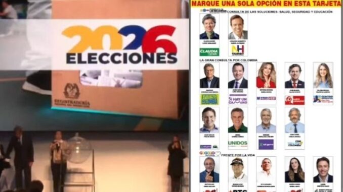 Tras el sorteo oficial de posiciones, el primer lugar del tarjetón para las consultas interpartidistas del próximo 8 de marzo será ocupado por la Consulta de las Soluciones, el bloque de centro liderado por Claudia López y Leonardo Huerta. En segundo lugar aparecerá la Gran Consulta por Colombia, de la derecha, y en tercer puesto se ubicará la consulta de izquierda, Frente por la Vida. Esta distribución será la que encontrarán los votantes en un único tarjetón tamaño carta, dividido en tres bloques.
