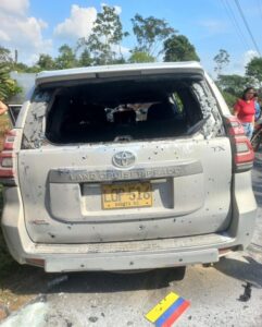Según información preliminar, el vehículo recibió múltiples impactos de bala que destrozaron los vidrios, atravesaron las puertas y pincharon las llantas, obligando a sus ocupantes a detenerse en medio del ataque. La acción armada se habría producido en horas de la mañana del jueves, en un tramo considerado de alto riesgo por la presencia de grupos ilegales.