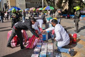 Simultáneamente, en un amplio despliegue sobre la Carrera Séptima, las autoridades incautaron 329 libros piratas, que eran comercializados en el espacio público sin ninguna factura que acreditara su legalidad.