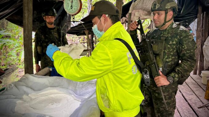 La Fuerza de Tarea Omega del Ejército Nacional, en coordinación con la Armada Nacional, la Fuerza Aeroespacial Colombiana y la Dirección de Antinarcóticos de la Policía, desmanteló un laboratorio de procesamiento de clorhidrato de cocaína en la vereda Caño Blanco, municipio de Puerto Rico, Meta.