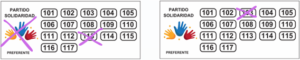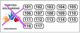 1. Marcar con una equis (X) o cualquier otro signo el logo de la agrupación política y el número del candidato de su preferencia o marcar directamente la casilla con el número del candidato de su preferencia.