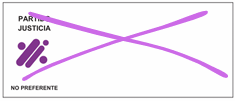 Si el ciudadano desea votar por una lista con voto no preferente, debe marcar con una equis (X) o cualquier otro signo el logo o cualquier espacio en la casilla de la agrupación política de su preferencia.