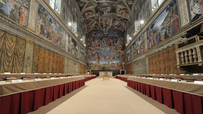 En la Capilla Sixtina, sede del Cónclave, donde todo habla de la presencia de Dios