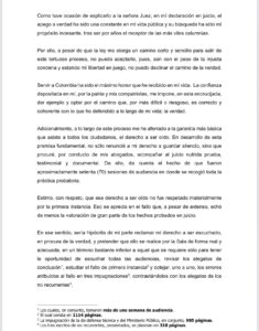 Por ello, a pesar de que la ley me otorga un camino corto y sencillo para salir de este tortuoso proceso, no puedo aceptarlo, pues, aún con el peso de la injusta condena y estando mí libertad en juego, no puedo declinar el camino de la verdad.