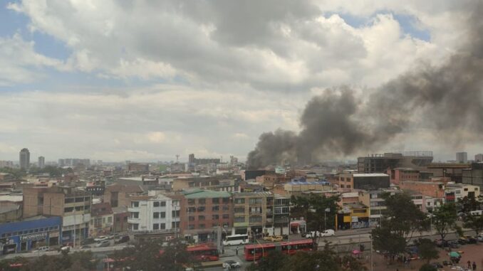 Un incendio de grandes proporciones desató una emergencia en el corazón de Bogotá, cerca de la zona comercial de San Andresito. Una columna de humo denso y oscuro se elevó sobre la ciudad, alertando a vecinos y comerciantes del sector.