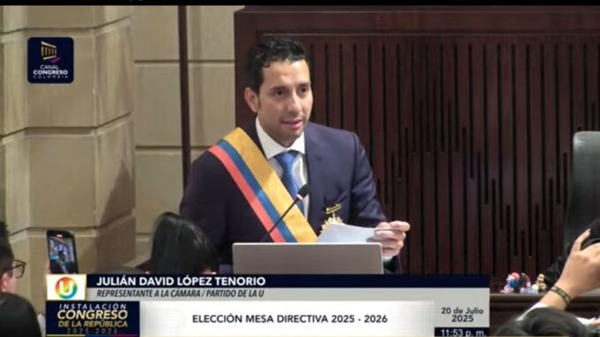 En la instalación de la nueva legislatura del Congreso de la República, la Cámara de Representantes eligió a su nueva mesa directiva, en un proceso que marca el inicio del cuarto y último año legislativo del actual gobierno. El representante Julián David López Tenorio, del Partido de la U, fue escogido como presidente de la Cámara, en una votación que reflejó el respaldo del Gobierno nacional y una reconfiguración de alianzas políticas en el Congreso.