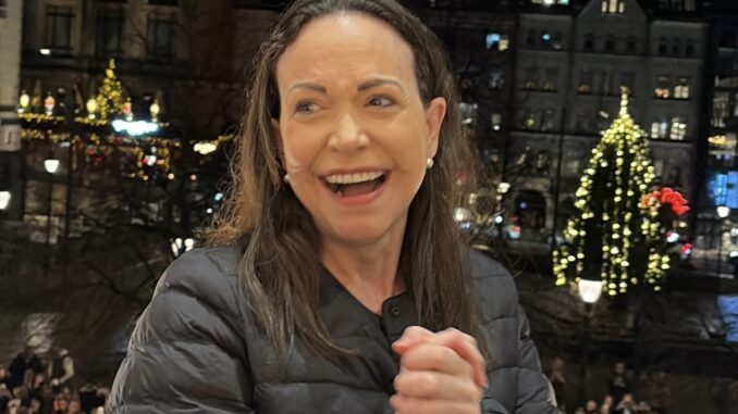 Su llegada a Noruega había generado amplias especulaciones. Aunque el Instituto Nobel confirmó que la dirigente viajó hacia Oslo, se esperaba que no alcanzara a asistir a la ceremonia de entrega del premio. Finalmente, fue su hija Ana Corina Sosa Machado quien recibió la medalla de oro y el diploma del Nobel de la Paz en su nombre.