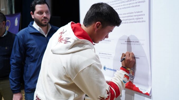 Durante el acto simbólico también participaron la Secretaría de Educación del Distrito y el Instituto Distrital de la Participación y Acción Comunal, entidades que ratificaron su compromiso de acompañar a los estudiantes en las actividades de vigilancia que desarrollarán durante 2026.