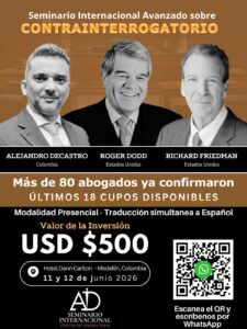 Con solo 18 cupos disponibles, el seminario se perfila como un espacio académico exclusivo para quienes quieren profundizar en una de las herramientas más determinantes del litigio contemporáneo. La cita será en Medellín, en una apuesta por traer al país una discusión de nivel internacional sobre técnicas avanzadas de juicio oral y contrainterrogatorio.